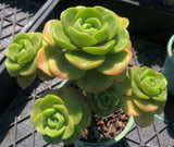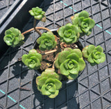 This variety is very new in Australia. It is a comparatively small grower in the Aeonium family.  Each rosette only grows to 8-10 cm in diameter. The leaves have fine hairs and the rosettes are rather compact and chubby. Lily pad is usually green but when sun is strong it turns yellow/orange.  It makes really good bonsai when it is a bit older and the 'lily pads' are branching out on the long stems.  As most Aeoniums, it likes full sun. May become dormant in summer.