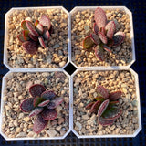 Adromischus trigynus has flat grey leaves with pretty red edges and markings on both side of the leaves. It is quiet easy to grow, prefers full/partial sun.