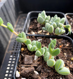 This trailing succulent has heart shape leaves. The leave margins are semi-clear, highlighting it's lovely geometry. Prefers full/partial sun, loves water.